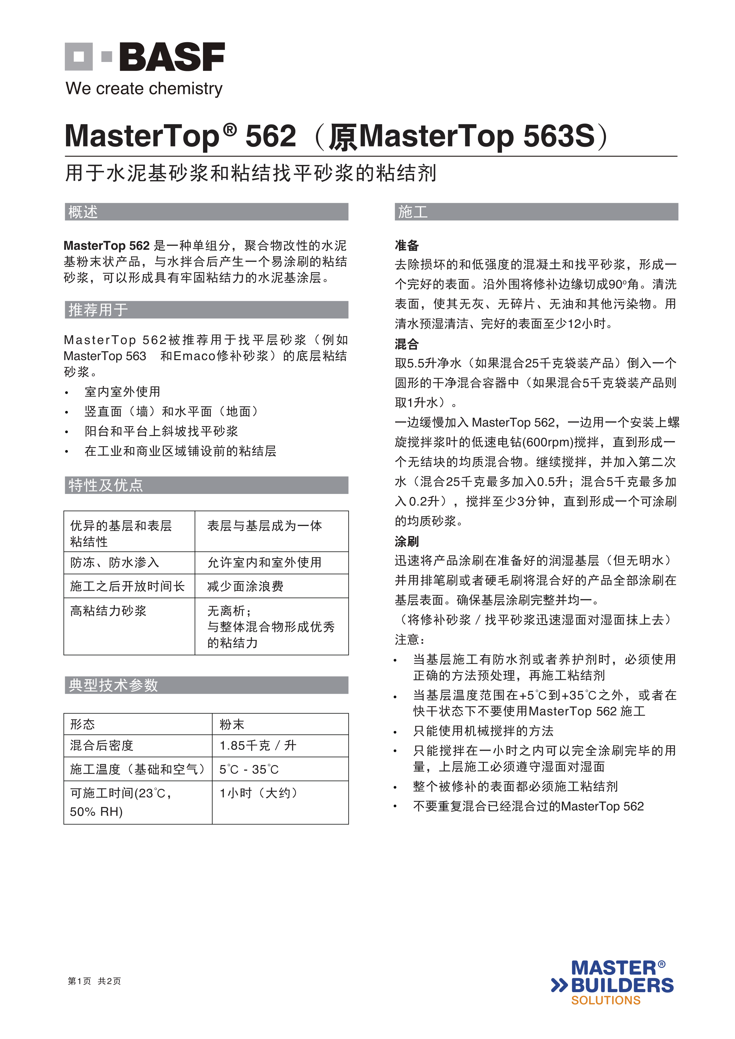 巴斯夫混凝土粘結(jié)劑MASTERTOP 562