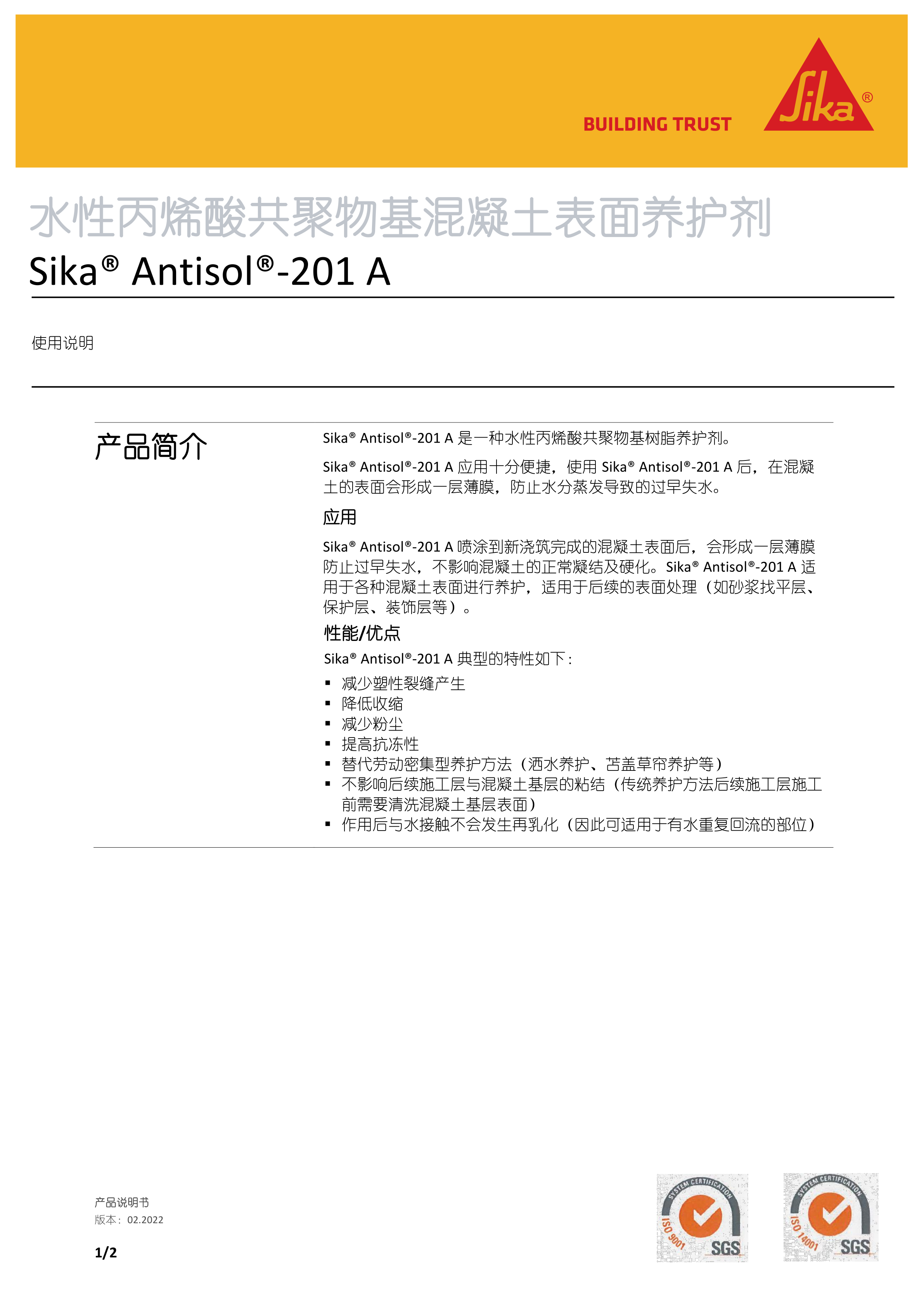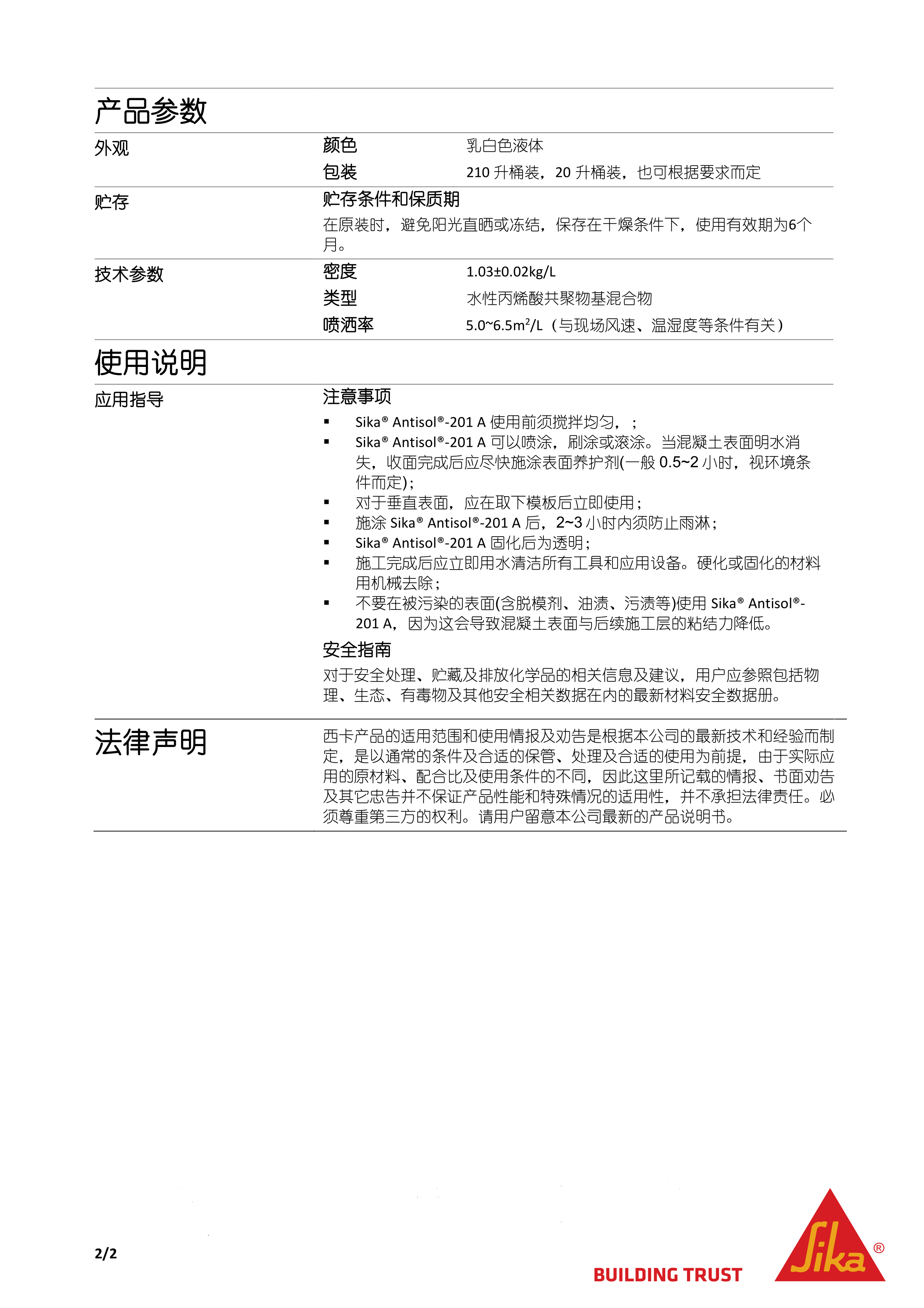 西卡養(yǎng)護劑Sika Antisol -201 A
