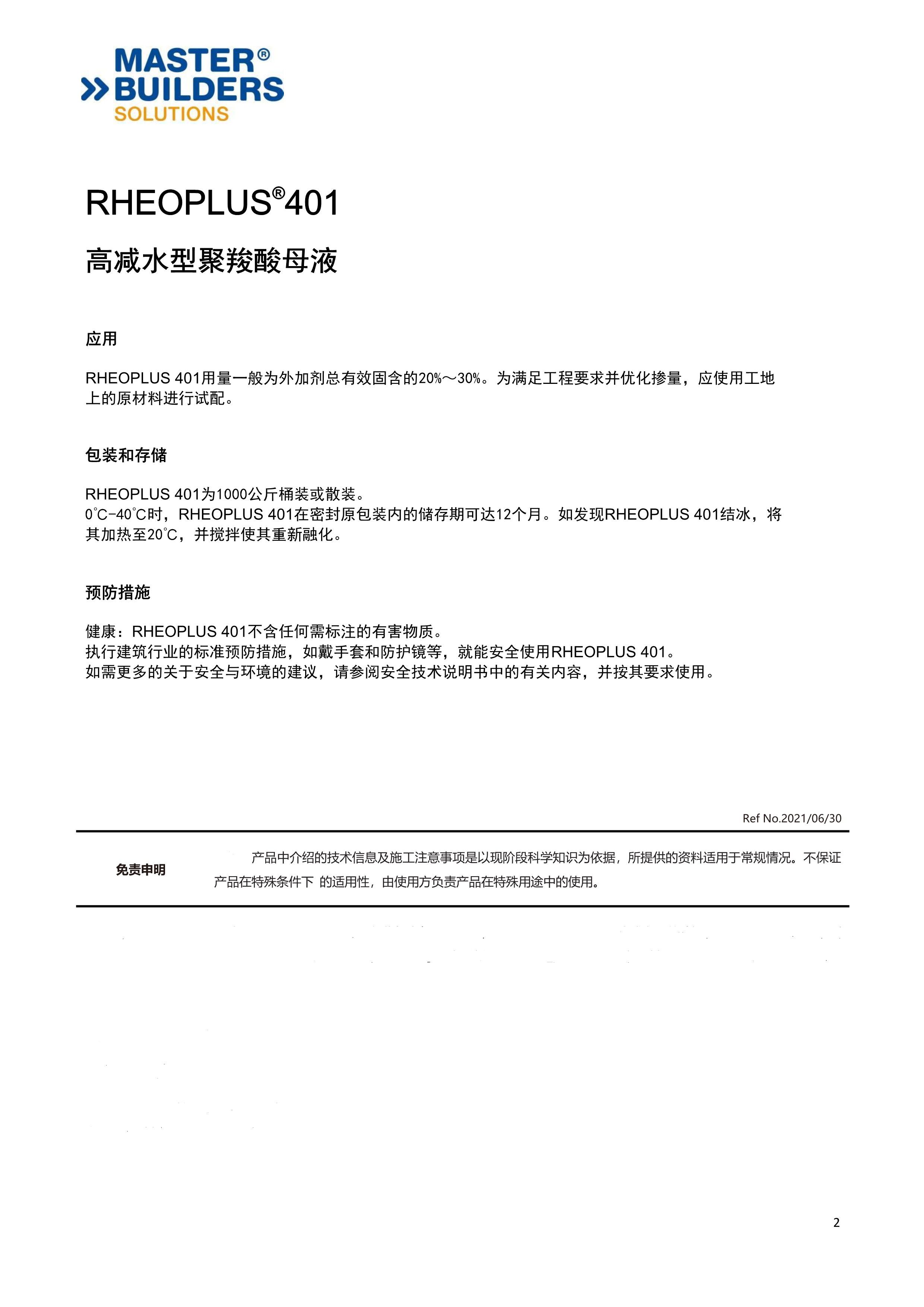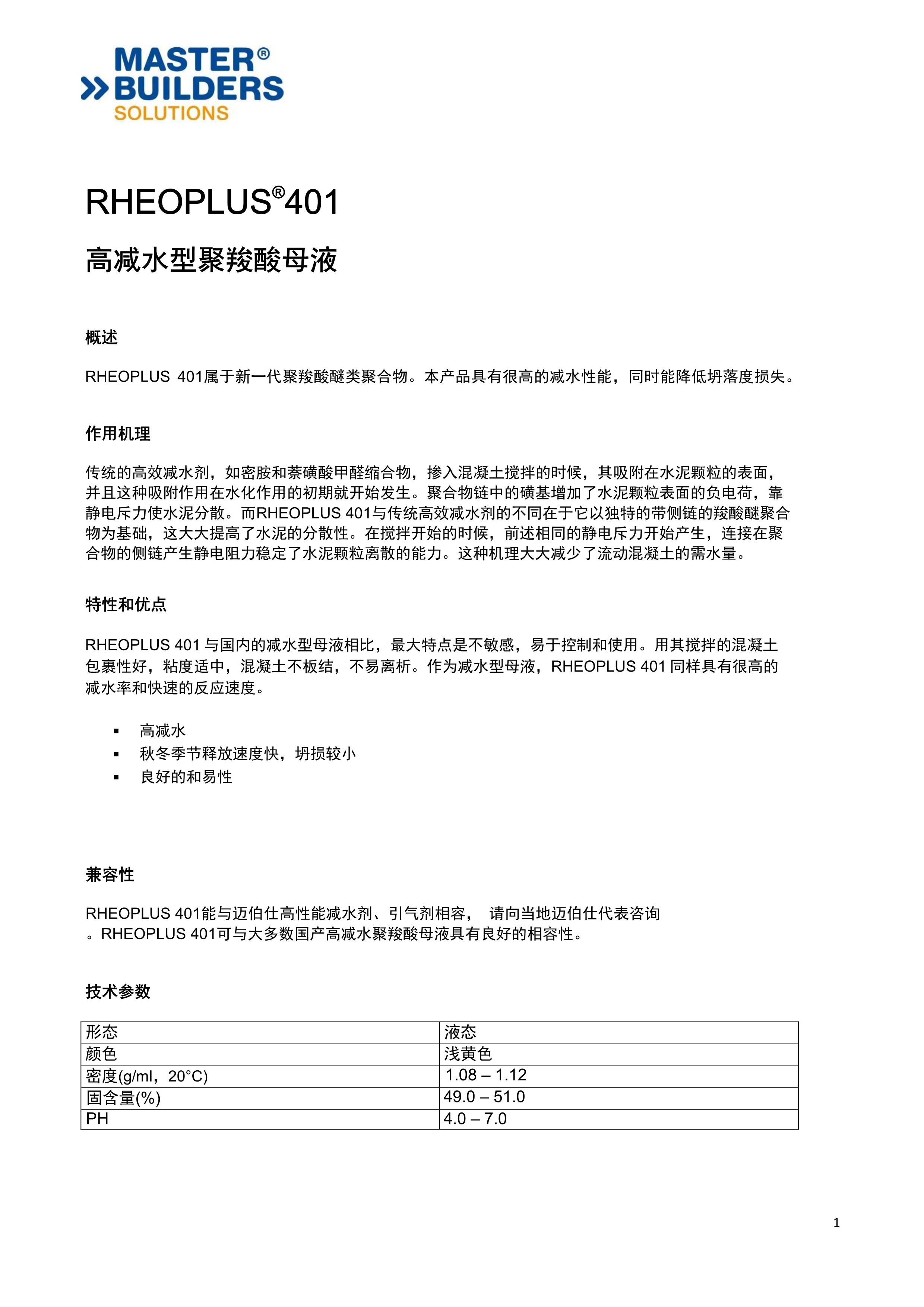 高減水型聚羧酸母液RHEOPLUS 401