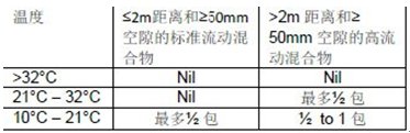 下表提供了每套材料可以減少骨料用量的指南,以便單位體積灌漿料的流動度和成本最優(yōu)化。使用本指南時,基礎和地板的溫度是關(guān)鍵因素;然而,灌漿料和環(huán)境溫度也很重要。