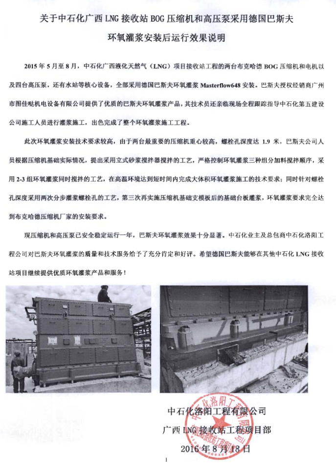 ? 輸氣和其它工業(yè)領域中壓縮機和動力泵等設備的精密灌漿。